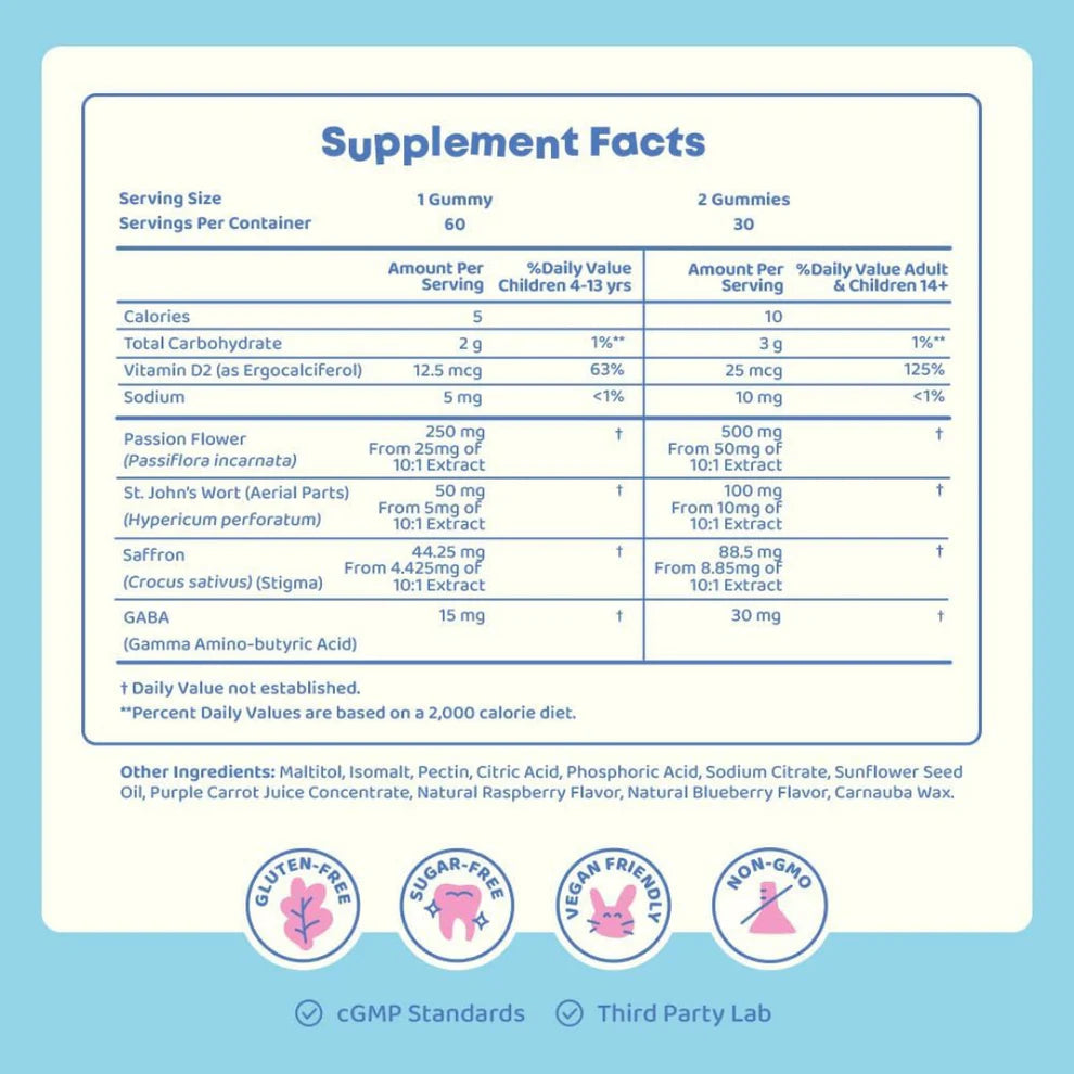 Yes! Adults also benefit from saffron and GABA for focus, stress management, and emotional balance. Dosage: 2 gummies daily.